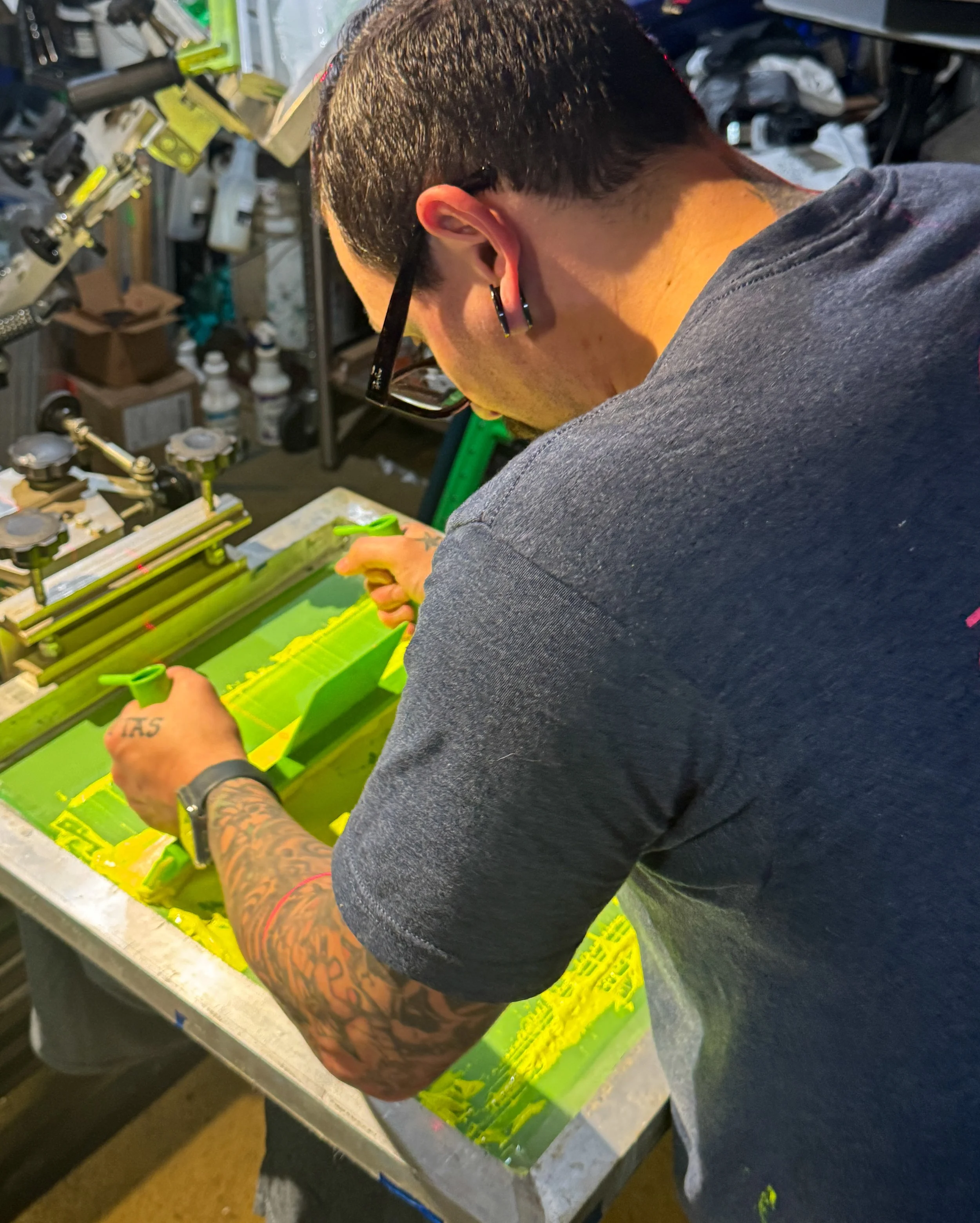 Matt, a seasoned screen printer with over 15 years of professional experience and a background in graphic arts. His eye for design and hands-on expertise ensure every print is crisp, vibrant, and built to last.